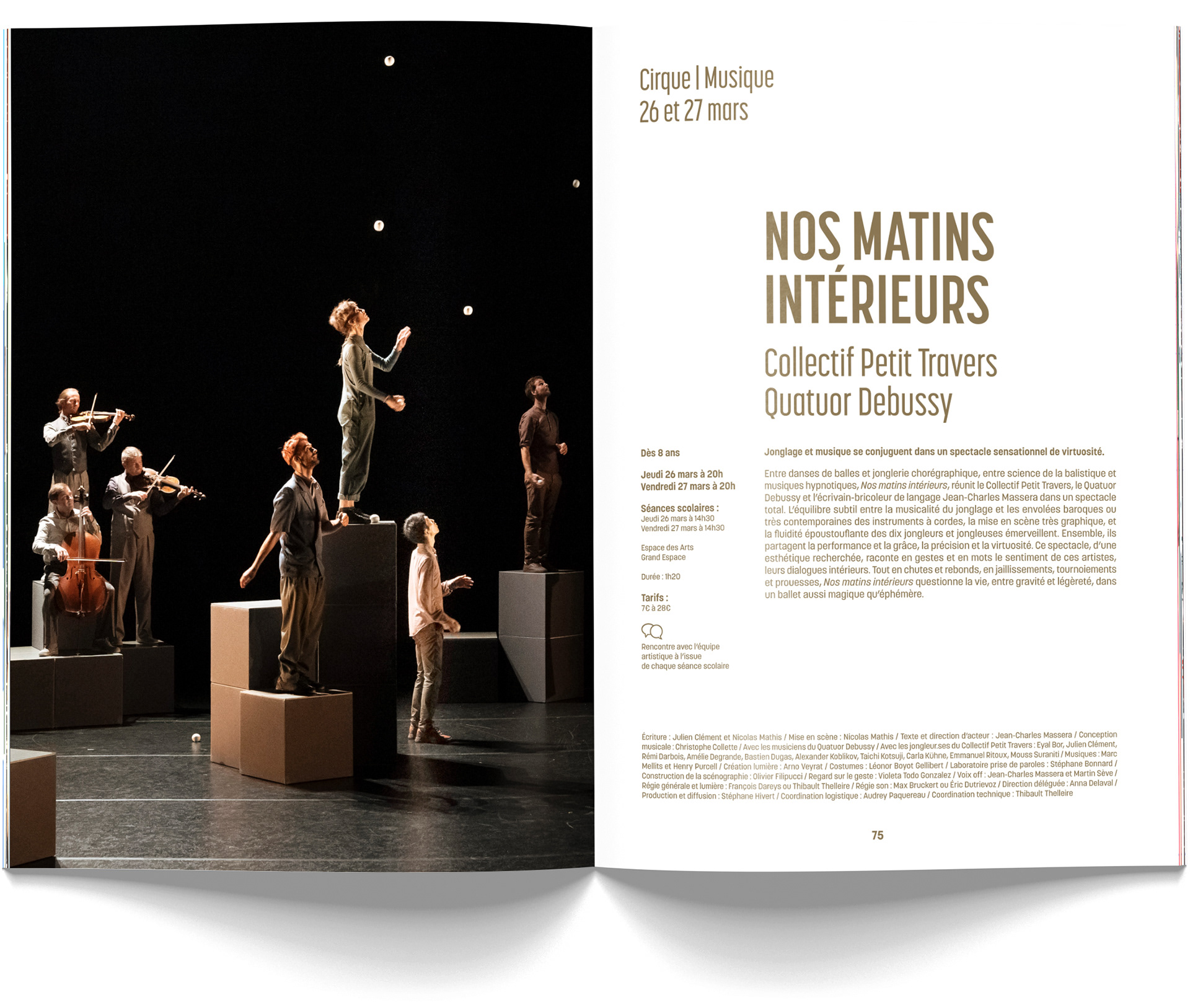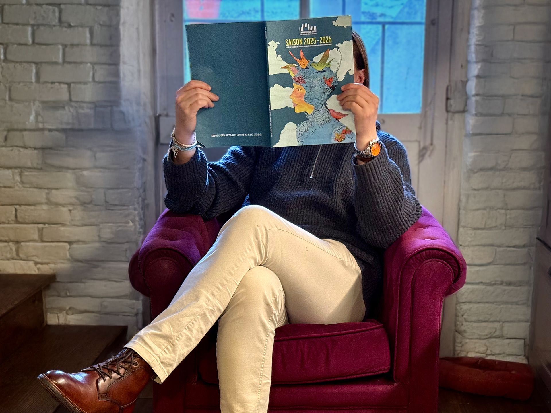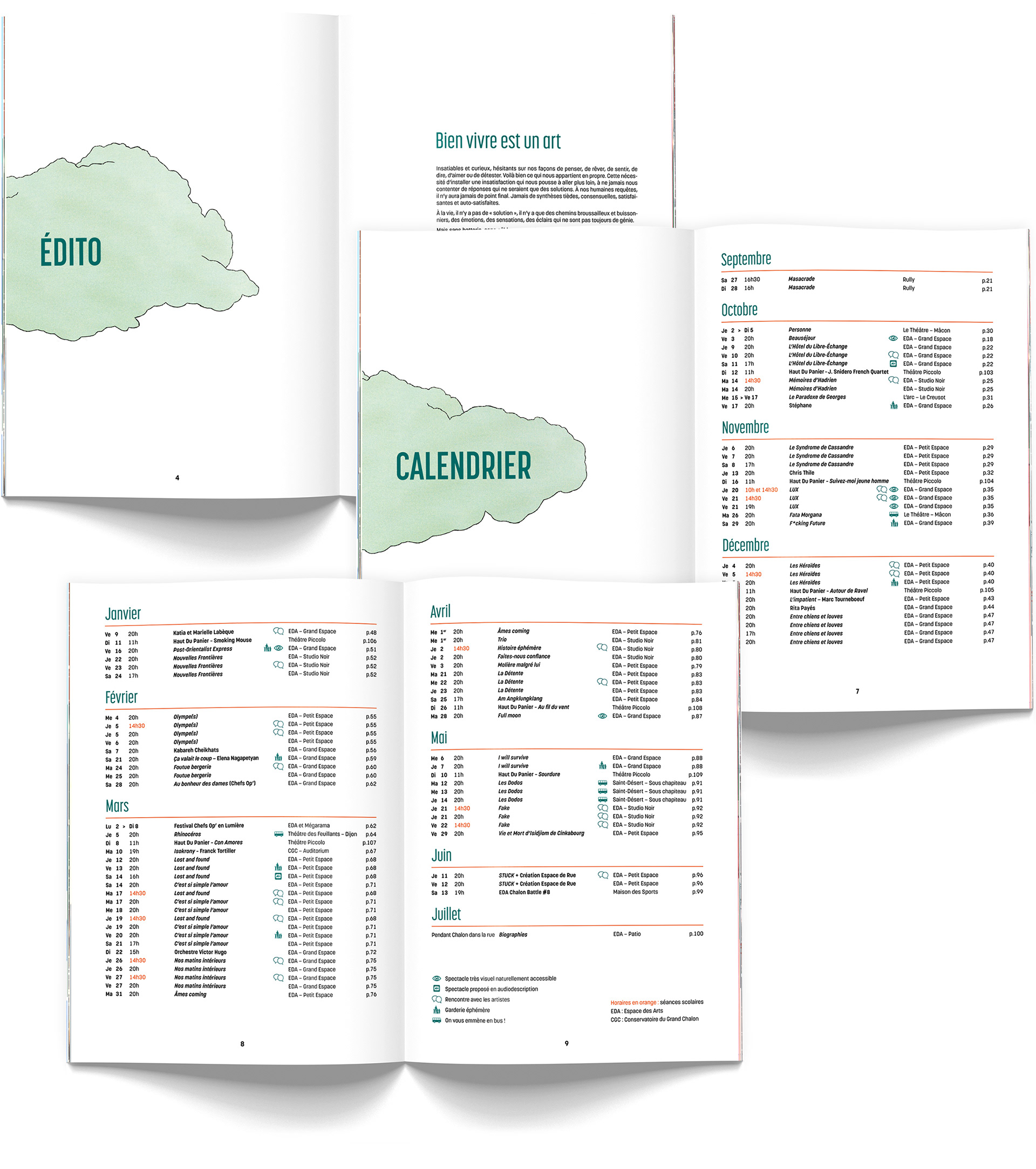 Cette saison, la maquette conçue l’an dernier est reconduite ! L’Espace des Arts apprécie son format et sa lisibilité. L’illustrateur des trois précédentes éditions, Thomas Hayman, laisse sa place à Marie Mohanna !