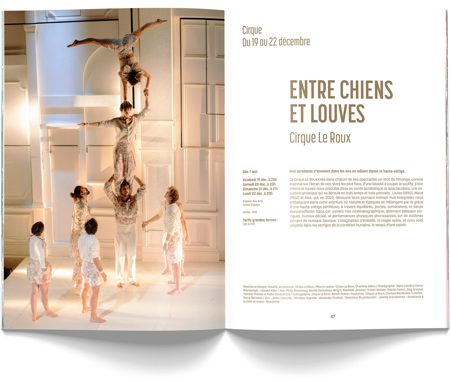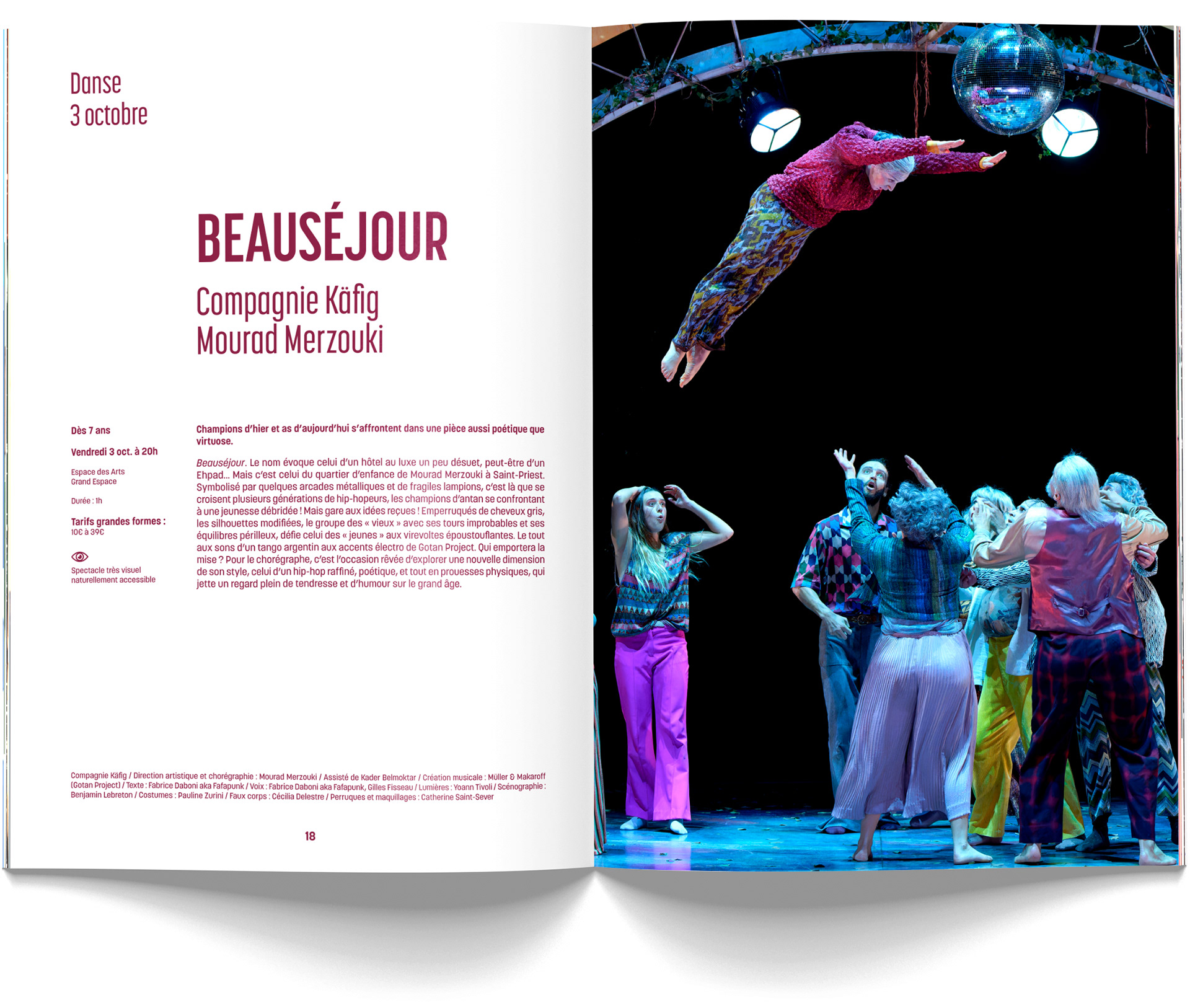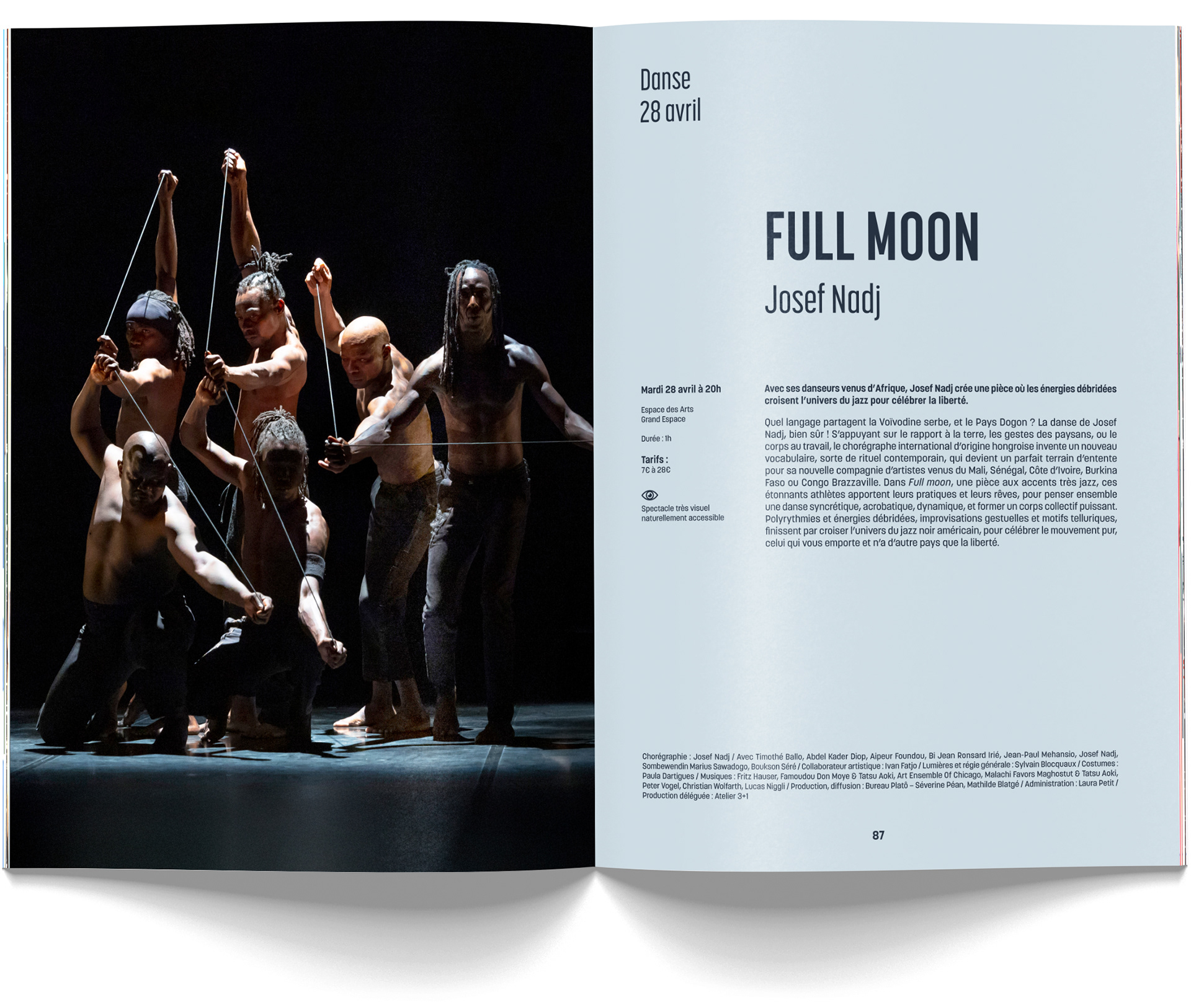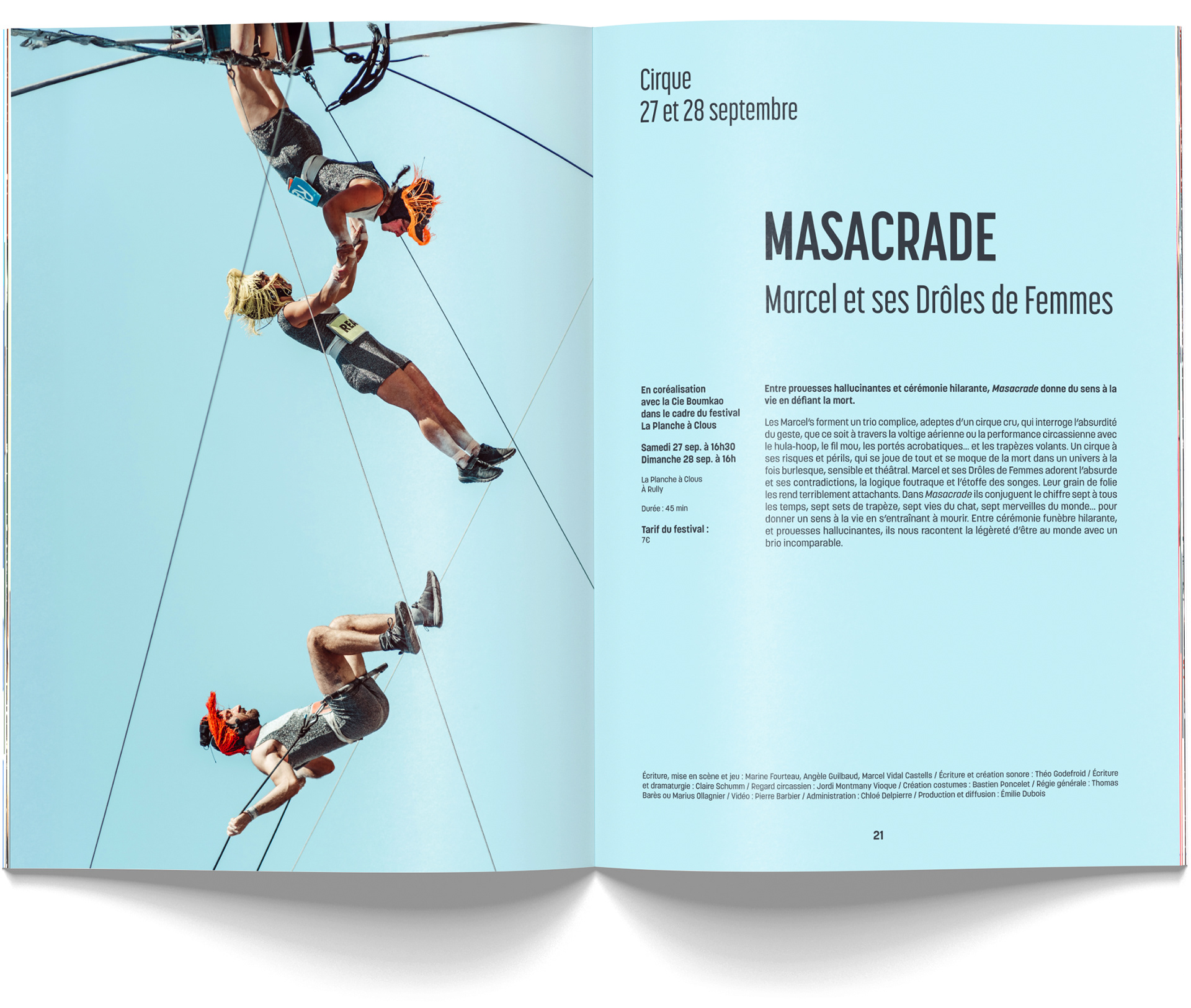 Suivront, comme chaque année, entre 150 et 200 affiches du format A4 au kakémono de 6 mètres de haut en façade de bâtiment, une cinquantaine de bibles de spectacles, des dizaines de pubs dans tous les formats et pour tous les supports, divers goodies, des pochettes à billets et leurs billets, des cartes d'abonnés, des bons cadeaux, des programmes diverses pour des événements diverses, des animations, des tracts A5 et A6, etc. La somme des documents produits est énorme mais nous formons une équipe hyper efficace au fonctionnement très fluide et évident ;)
