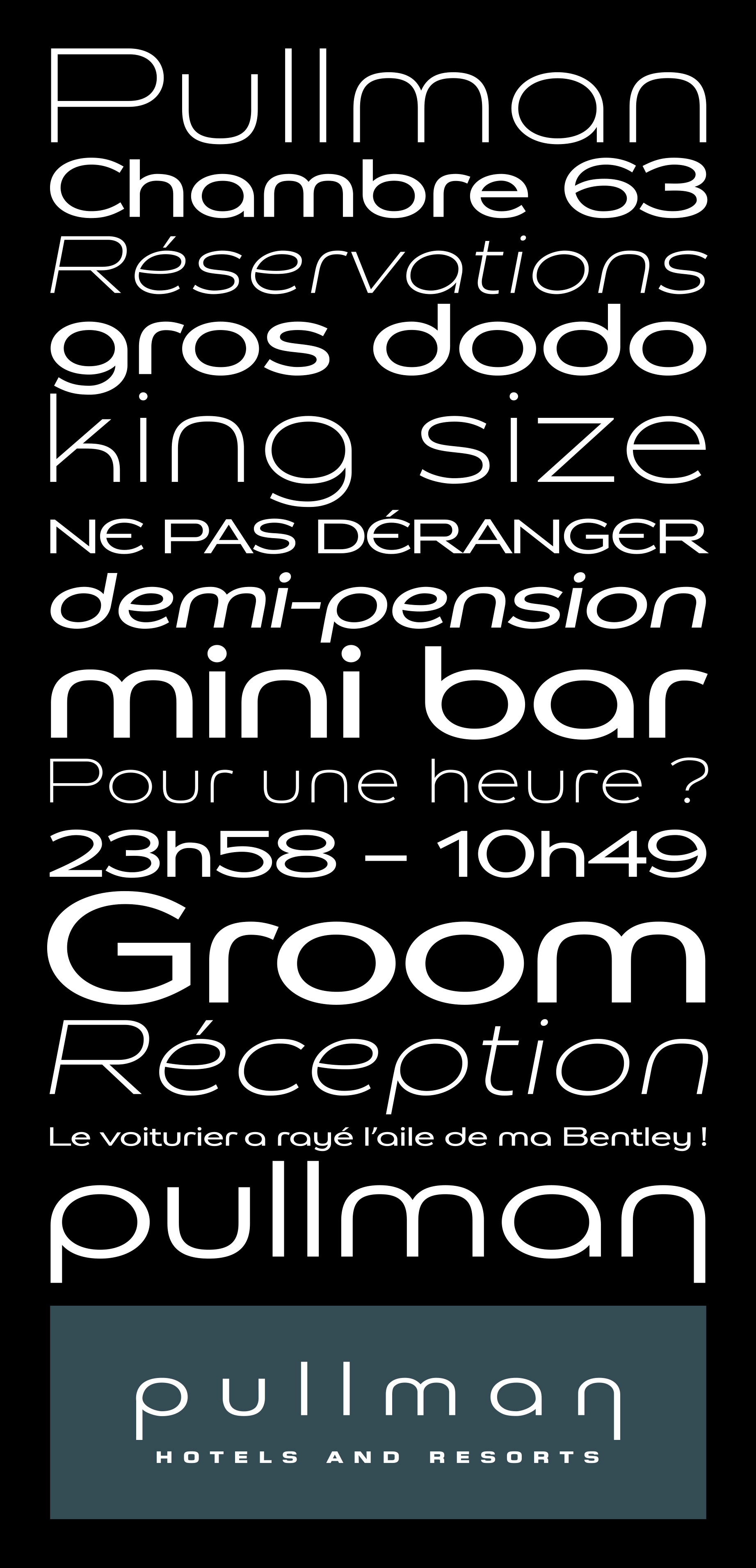 Conception de la police de caractères des hôtels Pullman d’après le dessin du logotype réalisé par FutureBrand.